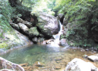 太田川をさかのぼること、約70km安芸太田町筒賀地区、三谷川の上流にある名峡、清流と緑が見事な景観をくり広げ、広島県第一号の自然環境保全全域に指定された「不伐の森」。